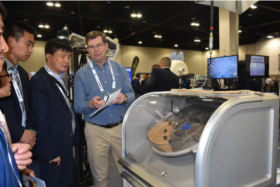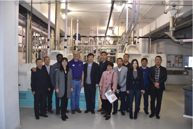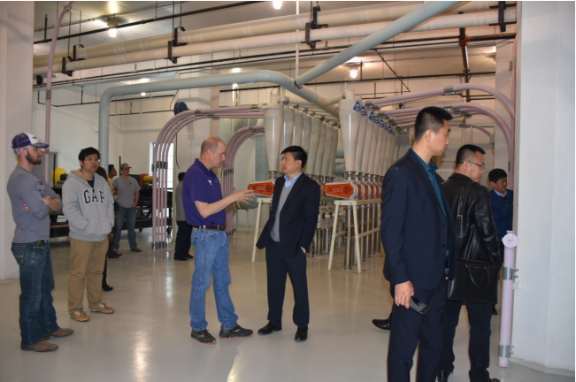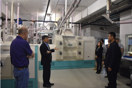 大會特邀艾倫特蕾西咨詢公司負責人(Alan Tracy Consulting, LLC)做了關于小麥的重要性(Wheat Matters)發言。 第123屆IAOM磨粉技術與裝備展會開幕裁剪儀式。 首先參觀了美國堪薩斯州大學(KSU)國際谷物研究院(IGP)Hal Ross試驗面粉廠, Hal Ross面粉廠也是堪薩斯州立大學谷物科學與工業學系的制粉實驗基地, 由Paul Blodgett先生帶領大家參觀學習, Paul Blodgett先生介紹了Hal Ross面粉廠資助人的歷史, 大家認真逐一參觀了生產線及設備,