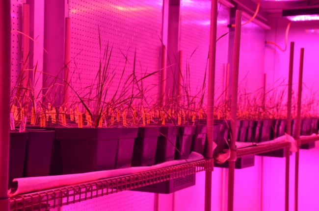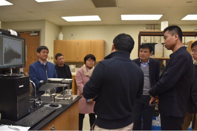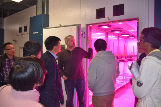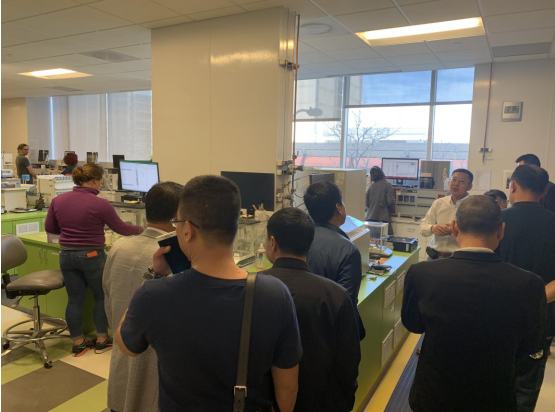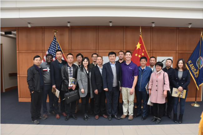 大家充分了解到了Hal Ross面粉廠生產流程和所有設備,最后與Paul Blodgett先生合影。 之后參觀訪問了堪薩斯州小麥創新中心,由Aaron Harries先生帶領我們參觀了實驗室, 使用LED紅藍燈光可以促進小麥在實驗室更快地生長,加快育種的研究進程。 小麥基因庫溫度是4攝氏度(相對濕度30)。
