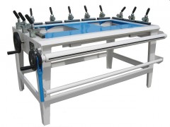 FBZF-D型電動式篩網繃裝機,是我公司多年來根據國內外各種繃裝機的結構、原理,結合具體作用效果,在外觀形狀、具體操作、應用范圍、漲緊力度、節能等各方面進行綜合研究而設計出的一種新型篩網繃裝設備。 FBZF-D型電動式篩網繃裝機的夾緊裝置采用軟橡膠鋸齒型牙齒齒合,其夾緊機構有可以調整自鎖間隙的調整螺母,在繃裝操作時,手動壓緊手柄,使其在自鎖時橡膠牙齒緊緊夾住篩網,按動縱向拉緊按鈕,穿過滾筒的篩網隨著滾筒的轉動可以繃緊,按動橫向拉緊按鈕,橫向拉緊平臺便向外推出,使篩網橫向拉緊。 本產品電機只有在按鈕按下漲緊操作時工作,在釘制或膠粘篩網時不工作,產品用電量很低。可滿足640×640、740×740等規格篩網(絹)的繃裝。 另外,我公司也提供手動式篩網繃裝機。