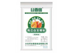 南瓜自發精粉選用優質南瓜,經精選去皮、分切、烘干、預熟化處理、低溫冷卻、輻照滅菌、超微粉碎等工序精制而成。再根據人體所需營養科學配以大豆粉、糯米粉、谷朊粉、玉米淀粉、酵母等,制成南瓜點香味純正,筋道好,彈性好,口感細膩等特點。