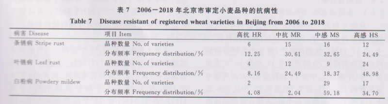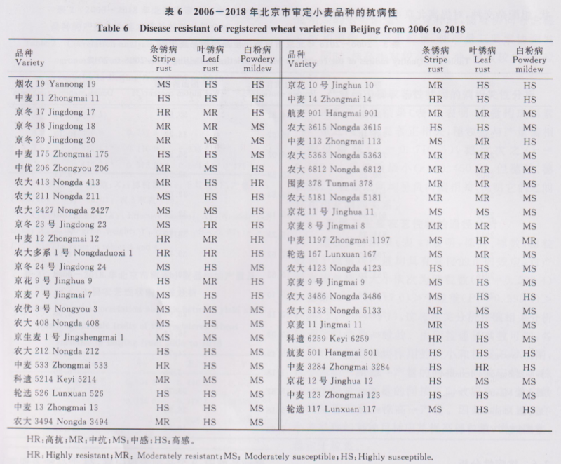 歷年北京市冬小麥區域試驗品種抗病性鑒定由農業科學院植物保護研究所主持完成,采
