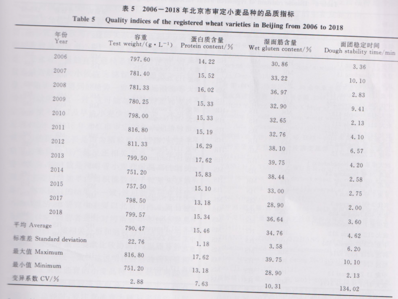 北京近年審定小麥品種中有19個為中筋小麥品種,只有5個小麥品種達到了強筋小麥標準,