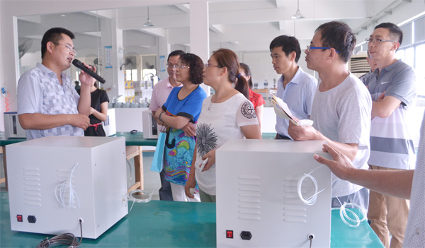 本次啟動會,中國科學院長春光機所劉英博士發表了題目為《光譜技術在糧油產業的應用》演講,進一步闡述了近紅外光譜在糧油檢測領域的應用優勢;河南工業大學糧食儲運工程中心王殿軒主任做了《糧油儲藏儀器設備相關科研平臺與基礎》演講;南京財經大學袁建教授做了《糧油檢驗的儀器化》,深入淺出的闡述了糧油檢驗儀器化的重要性、科學性,并且針對國內糧油檢驗儀器提出了“產研結合、注重原創、做精產品、樹立品牌”的發展方針;以上專家演講獲得了參會人員的廣泛好評。 參會人員參觀廠區并詢問相關產品