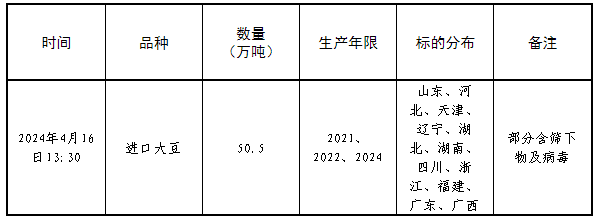 受中儲糧油脂有限公司委托,2024年4月16日13:30在國家糧食和物資儲備局糧食交易協調中心及聯網的各?。▍^、市)國家糧食交易中心組織開展進口大豆競價交易,請交易會員通過國家糧食交易中心官網(www.grainmarket.com.cn)“用戶中心”,登錄國家糧食交易平臺,在專場列表中選擇“進口大豆競價銷售交易”參與交易?,F就有關事項公告如下(重點提示內容詳見加粗字體部分):
