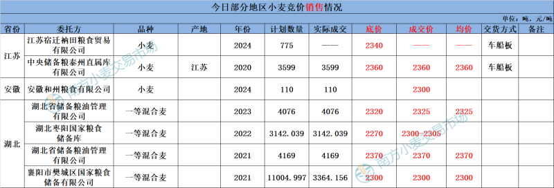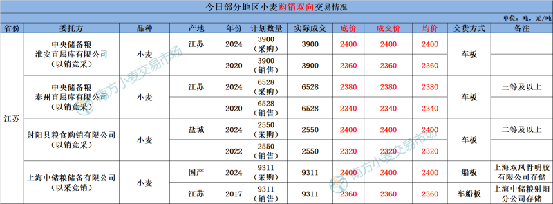 江蘇地區:宿遷地區面企收購普白麥凈糧報價1.19元/斤,紅麥進廠報價1.202元/斤,保持平穩;徐州地區面企普麥凈糧進廠價1.197元/斤,保持平穩;泰州地區面企普麥凈糧進廠價1.203元/斤,保持穩定。