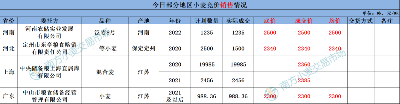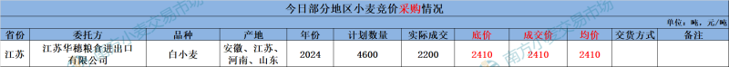 14日小麥競(jìng)價(jià)采購(gòu)成交情況