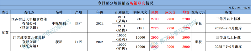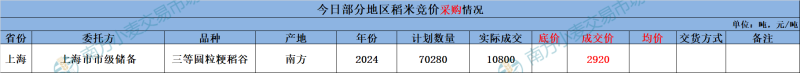 14日稻米競(jìng)價(jià)采購(gòu)成交情況